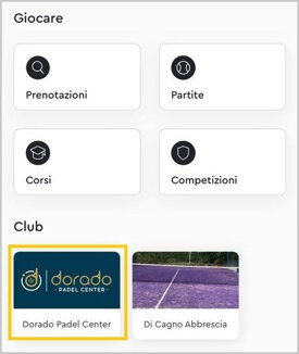 Nella home page seleziona il Dorado Padel Center tra i vari club disponibili.